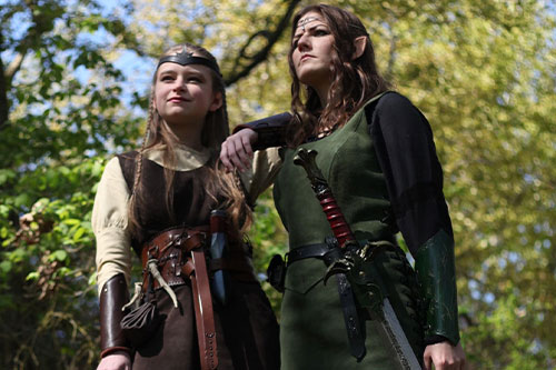 Bei den Elfen sind die Damen den Herren nicht nur gleichgestellt. Sie können auch beide kämpfen und die ganzen Eigenschaften zum Leben bringen, die man den Elfen nachsagt. Schön sind sie, fast übernatürlich schön, so anmutig, edel und tapfer. Als Waldelfen tragen sie schwarz, grün und alle Naturfarben, die sie zwischen den Bäumen nahezu unsichtbar machen. Als Hochelfen drücken sie Weisheit und Reinheit aus, die sich in so heller wie lichter Kleidung zeigen mag. Dunkelelfen gelten vielen als grausam und hinterhältig, ihre Gewandung ist eher düster, schwarz und strahlt Finsternis aus.