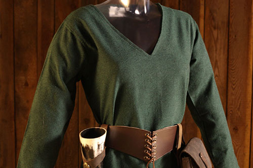 Wir haben Dir Kleider für Elfen-Damen aus unserem Versand-Shop beispielhaft zusammengestellt. Selbst die Kleidung oder das Kleid aus Baumwolle sollen dabei leicht und eben elfenhaft wirken. Ein gedecktes Grün in der Tunika, eine Woll-Gugel in Braun und eine leichte Mittelalterbluse mit Häkelspitze eignet sich als Kleid für die Elfe ganz wunderbar. Das gilt umso mehr, wenn der Kopf mit einer leichten Tiara geschmückt ist, die mit einer Kapuze zu verstecken ist. Ganz anders und leichtfüßiger kommen Damen als Elfen daher, wenn sie helle Beinlinge und eine helle Häkelbluse zum Leder-Diadem tragen. Leichte Armschienen unterstreichen das.